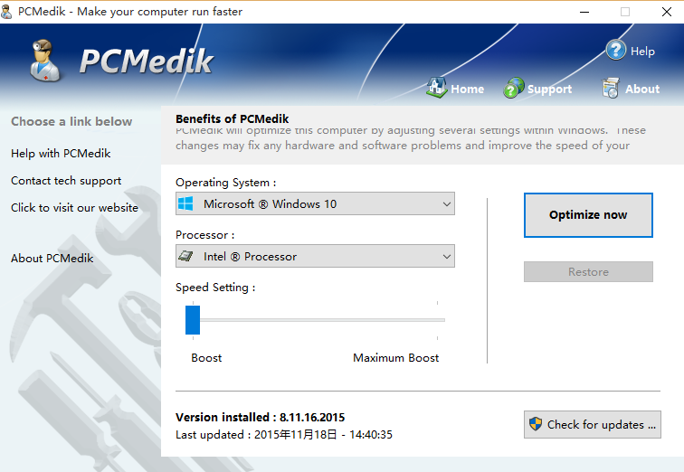 我们不断与新的系统性能调整更新PCMedik;这可以让你的电脑跟上,需求更快的硬件的最新软件。