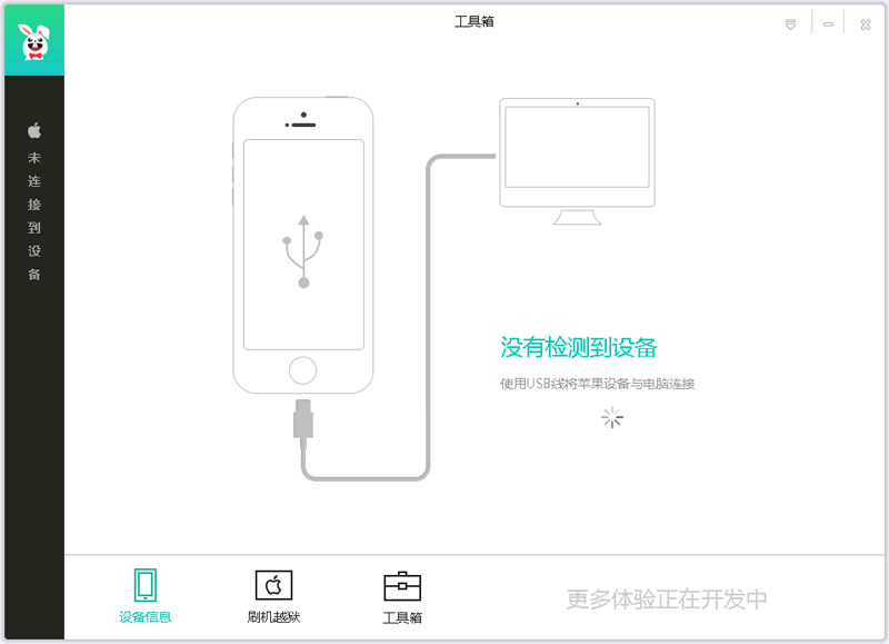 兔兔助手主要提供了IOS越狱功能,可以帮助ios设备与电脑建立链接,实现一键越狱。兔兔助手除了越狱功能外,还有关机、重启、刷机修复等系统工具。
