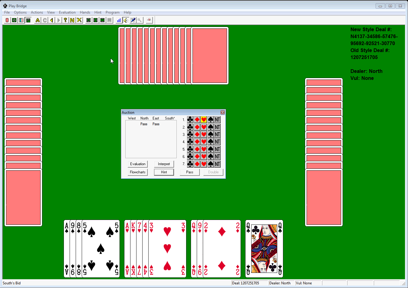 QQ桥牌单机版是一款非常好玩的桥牌游戏,桥牌所使用普通扑克牌去掉大小王后的52张扑克牌,共分梅花、方片、红桃、黑桃四种花色。四种花色有高低之分,按照英文各自开头一个字母的顺序排列而成,即梅花 (Clubs)为C,方片(Diamonds)为D,红桃(Hearts)为H,黑桃(Spades)为S。其中梅花和方片为低级花色(Minor suit),每墩20分;红桃和黑桃为高级花色(Major suit),每墩30分。每一种花色有十三张牌,顺序如下:A(最大)、K、Q、J、10、9、8、7、6、5、4、3、2(最小)。