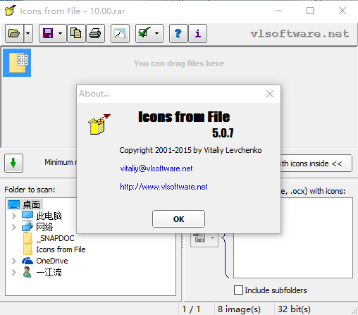 Icons from File 从文件的图标是一个免费工具提取图标或图标阵列从文件(EXE,DLL,OCX等)来扫描文件夹和搜索EXE,DLL和OCX文件,其中包含图标的能力。导出操作也可通过命令行执行的。