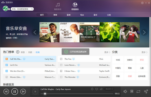 百度音乐PC客户端,专注聆听、纯净抛开繁杂!百度音乐PC版继续刷版本,最新版本号为v9.2.6,新版主要优化了卡顿问题,修复了BUG。话说,破解后的百度音乐白金VIP去广告版用它来下载无损音乐挺不错!