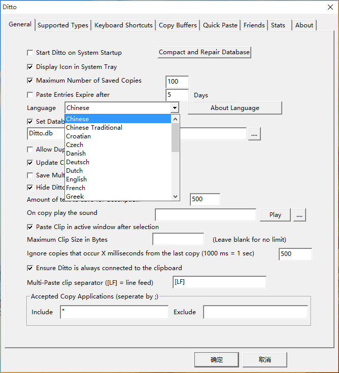 运行 Ditto.exe,Option - Language 里选择中文