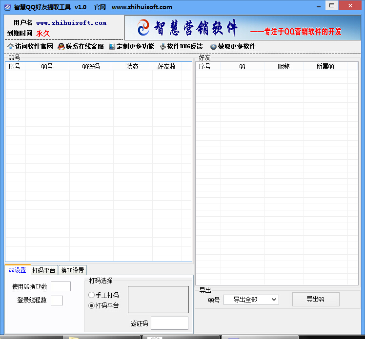 智慧QQ好友提取软件是一款用于提取QQ好友的软件,这款软件专为QQ营销推广人员开发设计,帮助用户一键快速提取所有QQ好友的QQ号,多线程登录QQ快速提取,支持按QQ号导出好友,支持手工打码和打码平台打码,欢迎免费下载使用。