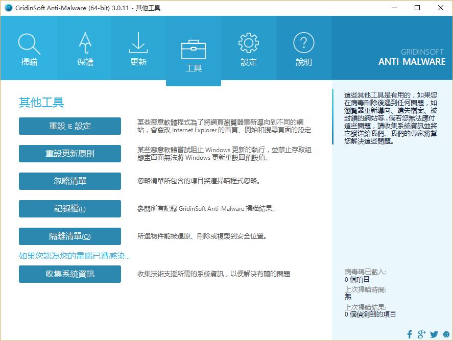另外,GridinSoft Anti-Malware 修复被一些恶意软体所做额外的系统修改。