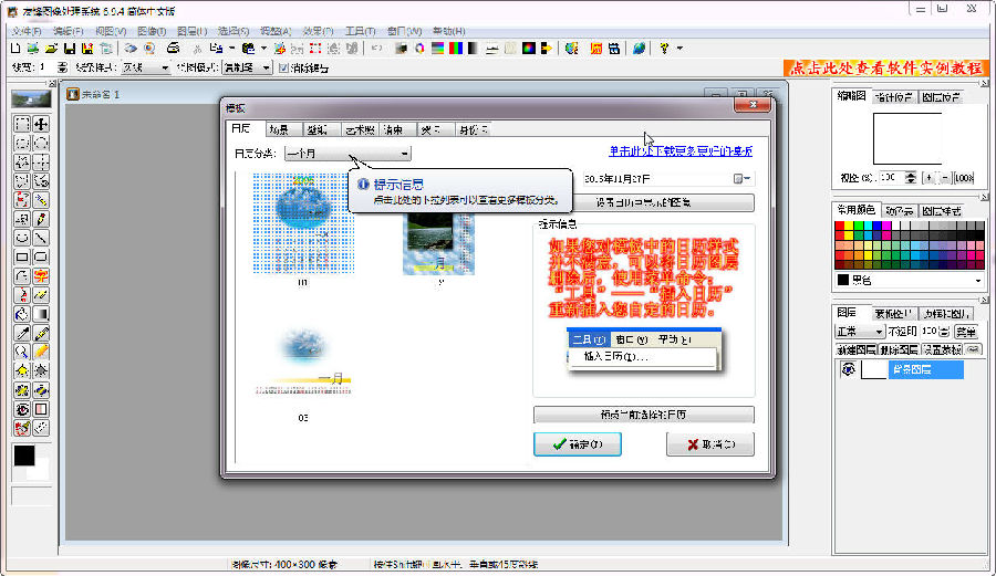 6、提供图像模板,可以轻松的创建精美的日历、各种卡片等图像;