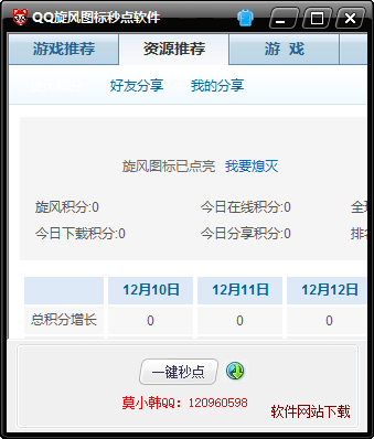 QQ旋风图标秒点工具 是一款小巧的“娱乐”软件,能够一键点亮QQ旋风的图标。软件由第三方作者开发,请谨慎使用,注意QQ账号的安全。