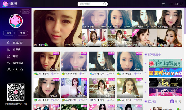 微播娱乐视频是一款美女直播平台,同时也是真人视频互动交友的PC客户端,超多帅哥美女直播互动,支持超大、清晰的视频为用户带来视觉上的享受。大屏、清晰并且畅通无阻的视频观感,是微播视频社区所具备的的优势。微播,女神都在玩的根据地。乐活派热力追捧的地方。这一刻,您就是至高的国王。