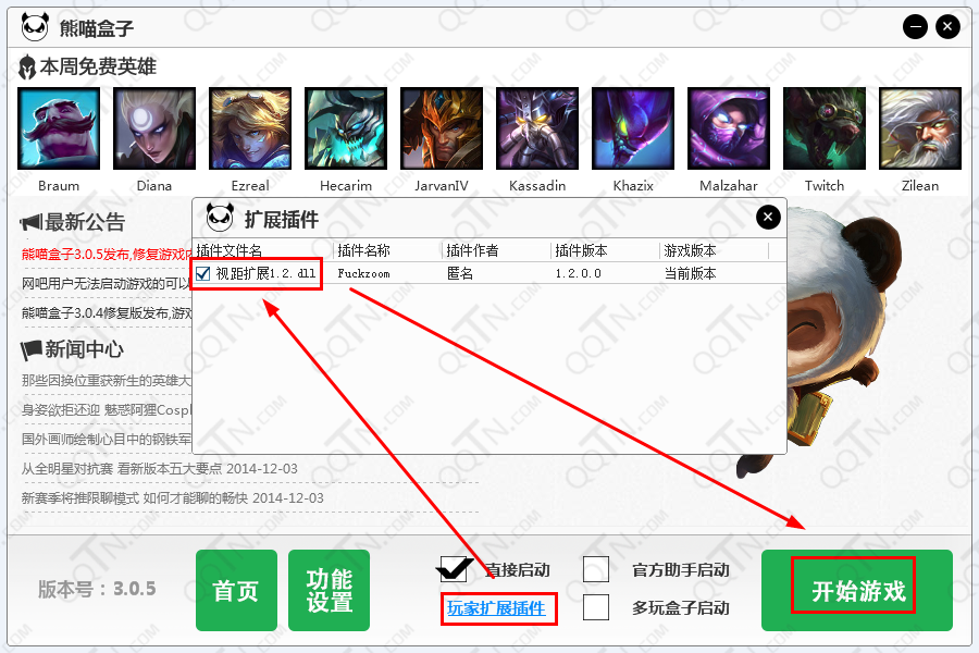 将熊喵盒子视距扩展插件放置到熊喵英雄联盟盒子的“plugins”目录中,即可让熊喵盒子拥有无限视野功能,配合盒子已有的功能,发挥熊喵盒子的最大效益!