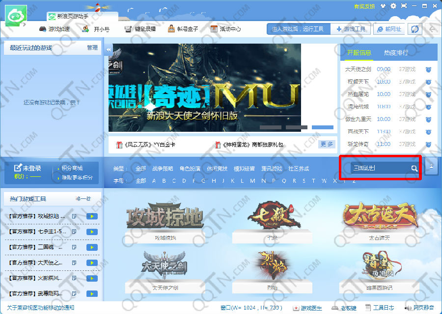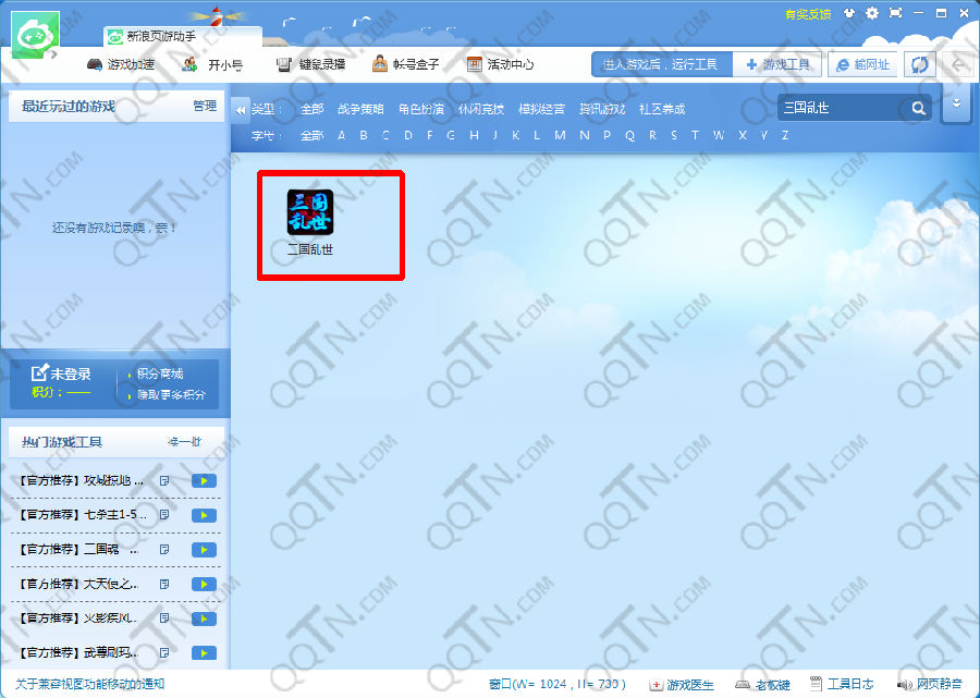 2、进入新浪页游助手,如下图所示,搜索游戏“三国乱世”