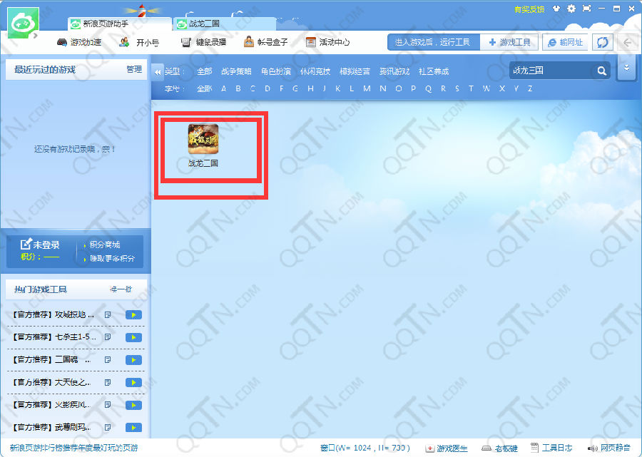 2、打开新浪页游助手,搜索战龙三国