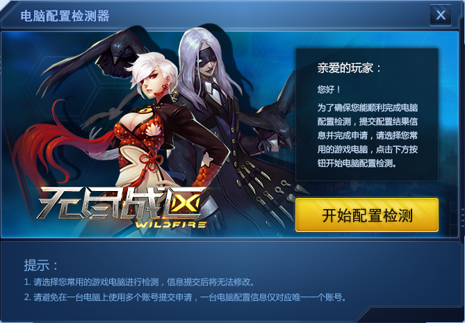 无尽战区电脑配置检测器可以帮助玩家将自己的电脑配置信息发送给游戏官方,在发送配置时需要提交邮箱和手机号码,以便获得游戏激活码。