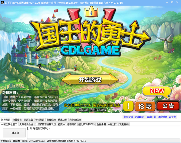 国王的勇士5残熙辅助提供了逆天修改、物品替换、无敌修改、血魔修改、娱乐功能以及自定义修改,给你带来最好的游戏体验。
