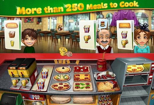 在这款令人上瘾的免费时间管理游戏中,烹饪世界各地的美味佳肴与诱人甜点!从甜品店和快餐厅,再从生蚝吧到中餐馆,提供5个独特地点选择,您可在不同环境与烹饪方法中磨练自己的技巧。采用一百多种食材来烹饪数百道可口菜肴。尝试所有可能的厨房用具,比如咖啡机、电饭锅、比萨炉和爆米花机。精心装饰自己的餐馆,吸引更多顾客。制作独一无二的免费赠品,比如曲奇饼干和玛芬蛋糕,让顾客体验更加个性化与难忘 - 就像在真实生活中一样!升级厨房,制作种类更多的菜肴。哦,对了,我们是否说过这个游戏令人上瘾、欲罢不能,就像发烧一样?敬请享受烹饪乐趣,别忘了在Facebook上与朋友分享您的美食!