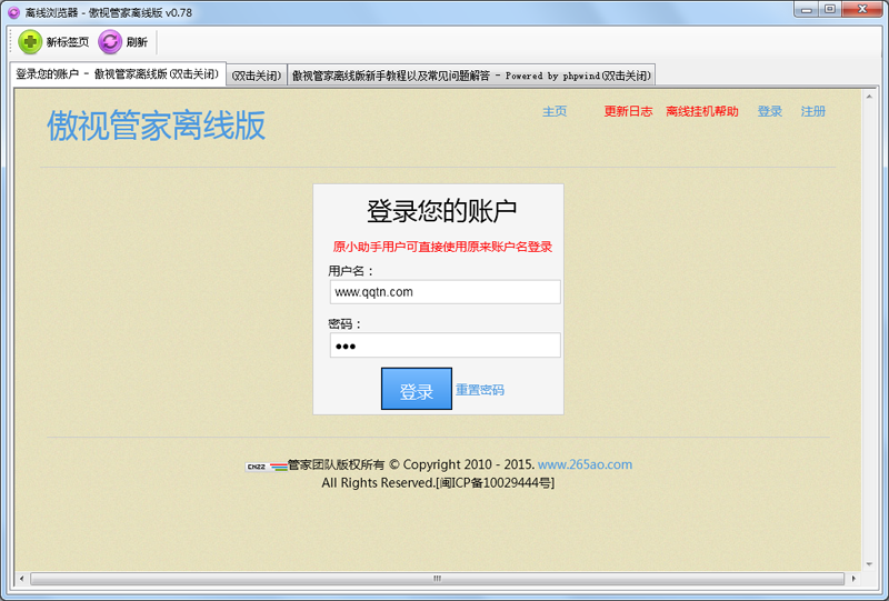 傲视管家离线版绿色免安装,直接解压压缩包后便可使用,主要提供了离线挂机功能,注册帐号后即可使用。