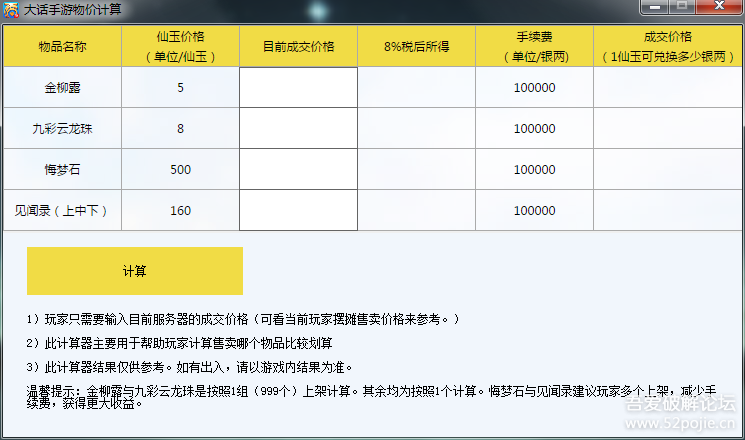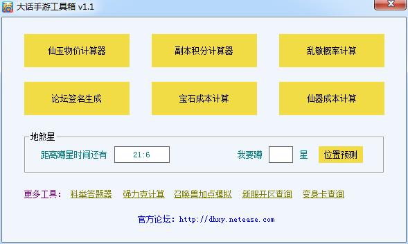工具包括:仙玉物价换算、副本积分兑换计算、开服表、科举答题