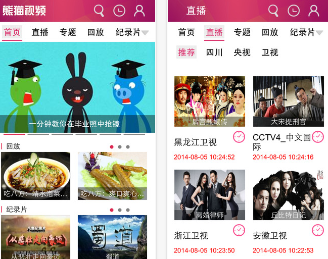 熊猫视频客户端是由四川广播电视台打造的手机视频在线播放平台,采用最新的流媒体技术,集成国内央视、省级卫视和四川地方电视台优质视频直播信号。24小时不间断高清直播,此外还有上万小时的精彩节目可供回放观看,内容涵盖新闻、综艺、娱乐、体育、热剧、电影等多种类型,满足用户全方位的内容需求。